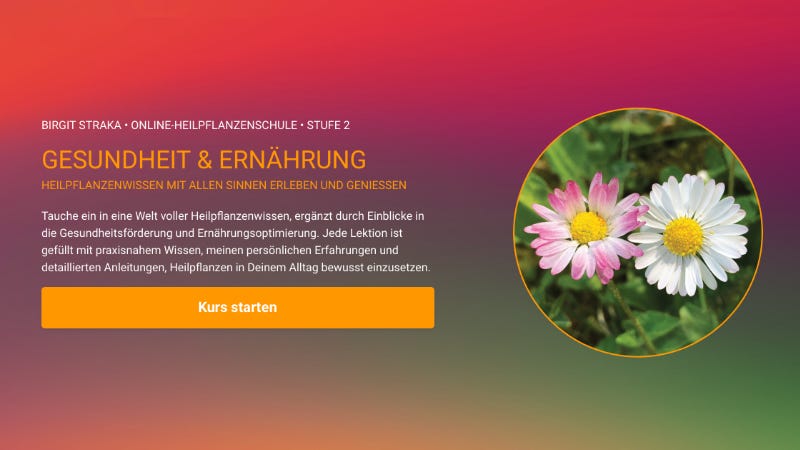 "Ich besuche Deinen Onlinekurs Heilpflanzenkunde und bin völlig begeistert. Die meisten von Dir vorgestellten Pflanzen habe ich in meinem Garten.