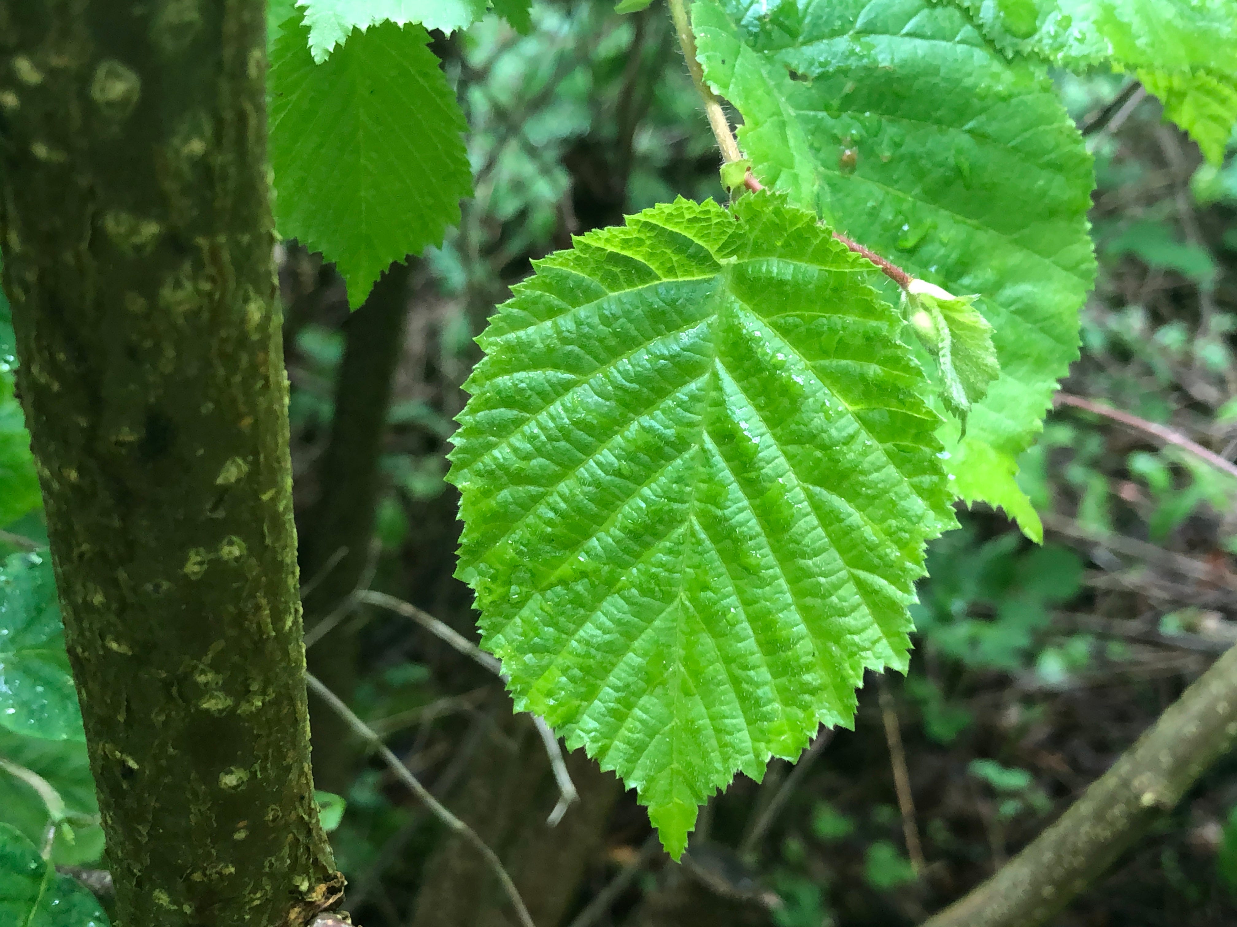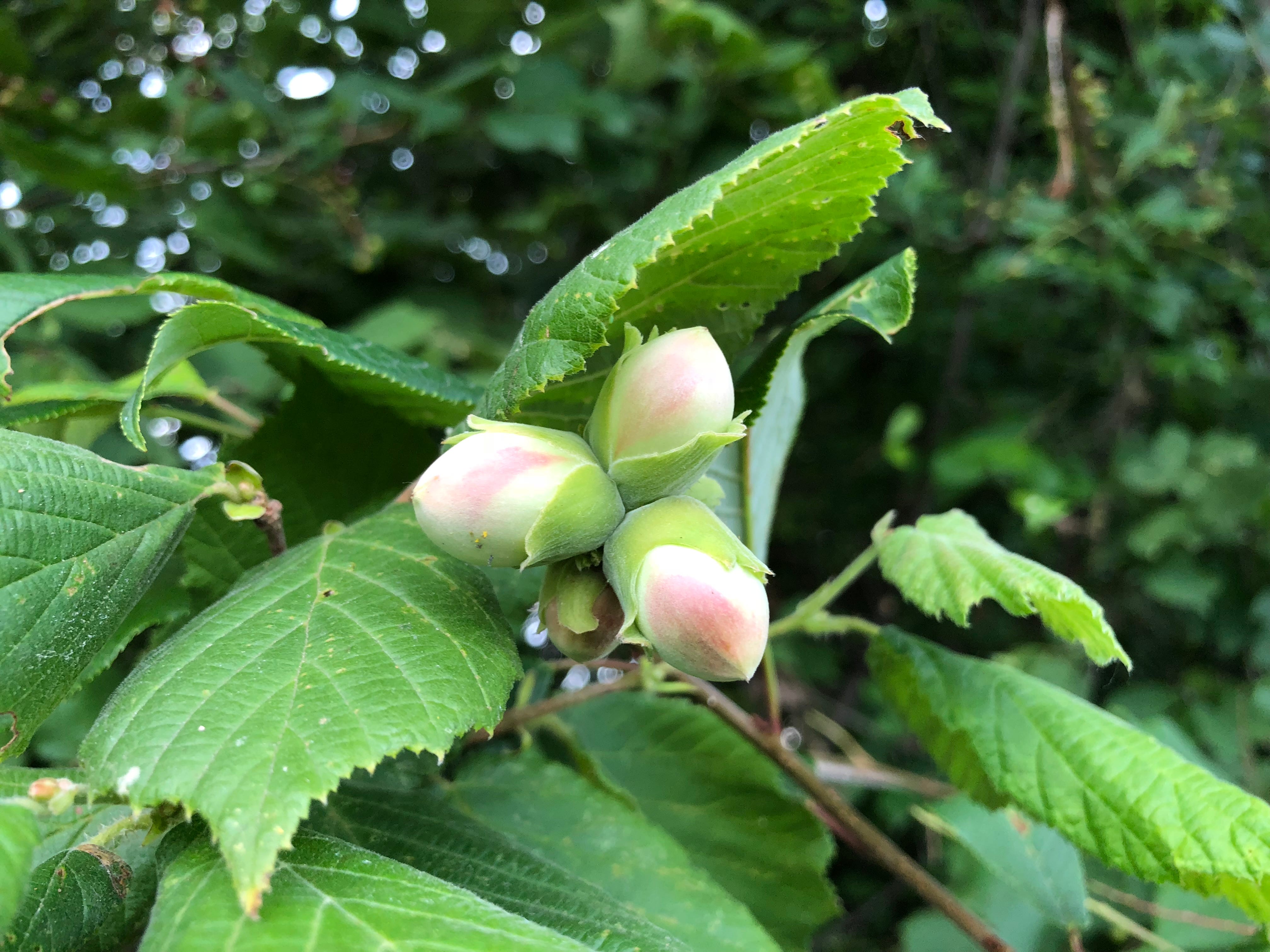 Blatt, Blüte, Frucht (Nuss), Rinde