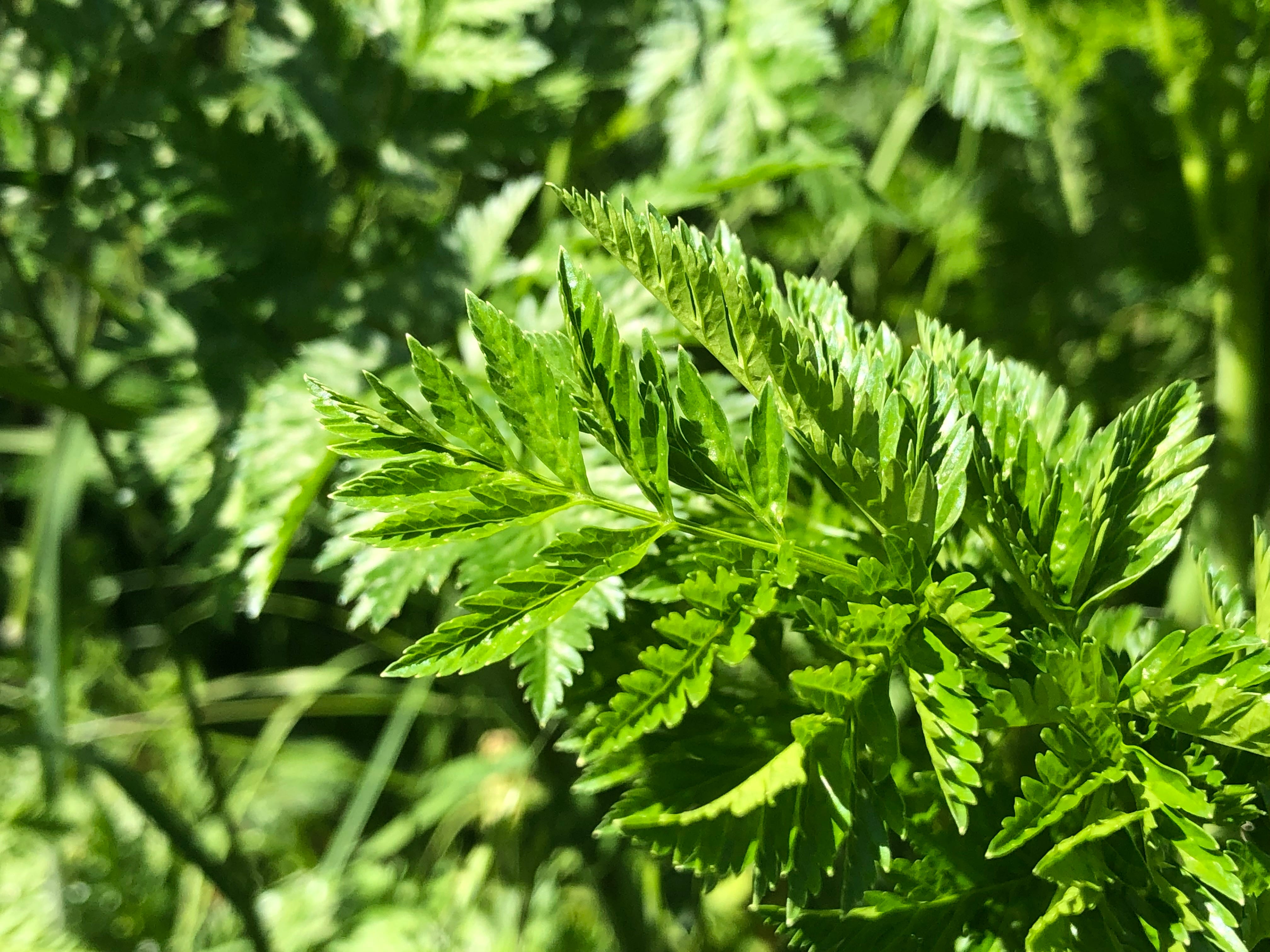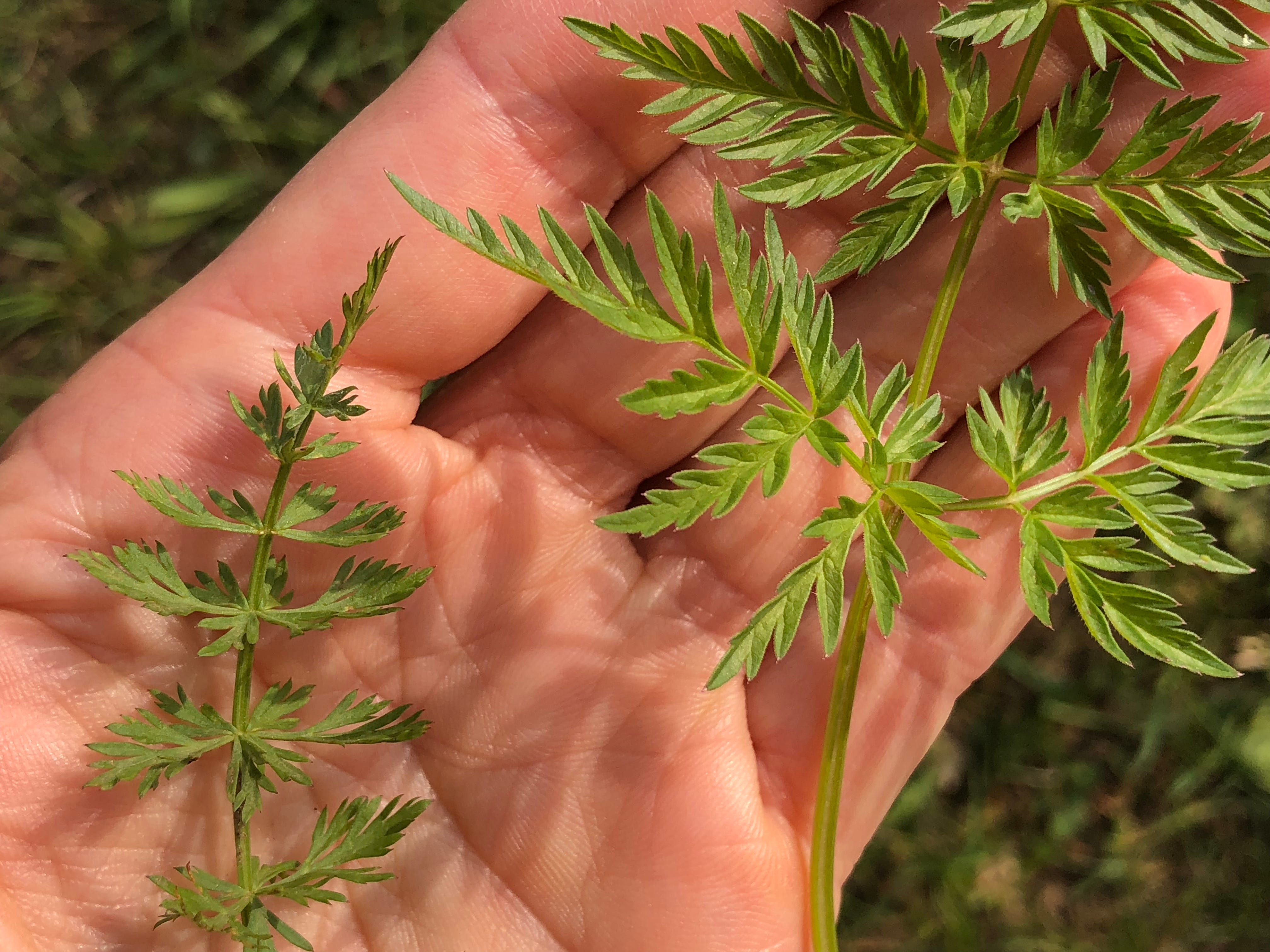 Foto 5: Vergleich - Blattoberseite links Wilde Möhre, rechts Wiesen-Kerbel